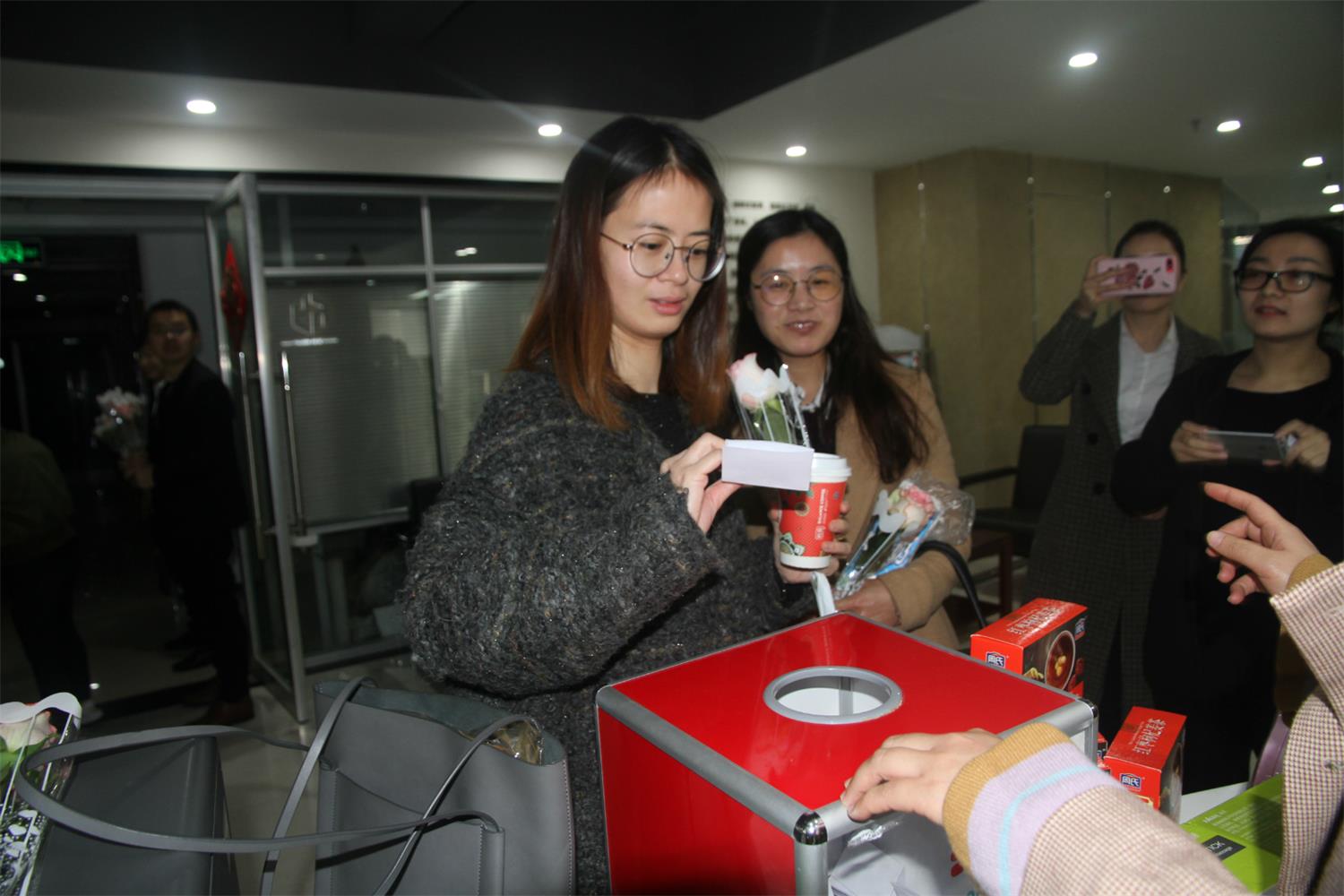 男同事們的“花樣”祝福與現(xiàn)場的抽獎安排將本次活動的氛圍推向了高潮。在辦公區(qū)門口,陸續(xù)到達(dá)的女員工們第一時間就收到了節(jié)日的鮮花與祝福,并參與了集團(tuán)的抽獎活動,8名幸運(yùn)兒將公司提供的精美禮品收入囊中,收獲了“健康、甜蜜、美麗”的節(jié)日祝愿,歡快、熱烈的氣氛在現(xiàn)場蔓延。